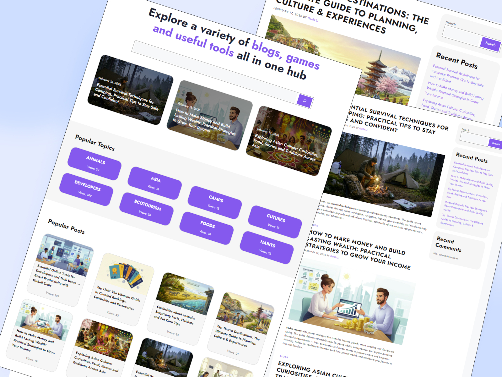 Our website features a diverse collection of blogs covering a wide range of interests and knowledge areas. Topics include wildlife, best-of lists, camping and survival techniques, as well as fascinating information about Asian culture, among other subjects.